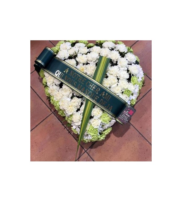 Le cœur est la pièce de deuil par excellence qui saura exprimer tout l'amour, le respect et l'affection eprouvée à l'égard du défunt. Vous pourrez témoigner de vos sentiments et exprimer ainsi vos sincères condoléances. Le visuel a valeur indicative, le produit est susceptible de varier suivant la saisonnalité, l'arrivage et la sensibilité du fleuriste.