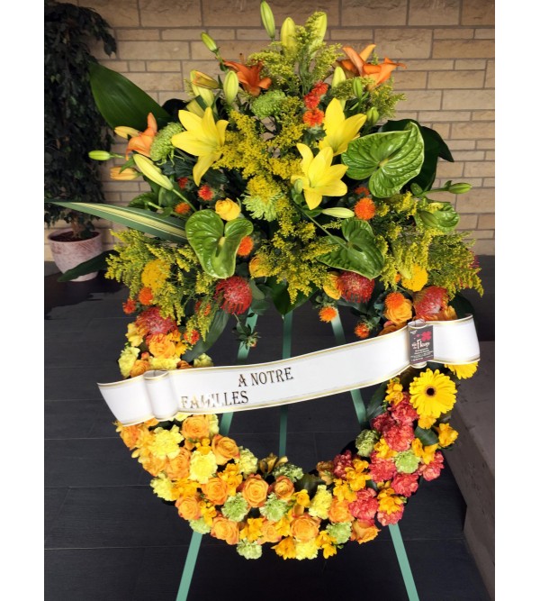 La couronne est la pièce de deuil par excellence qui saura exprimer tout l'amour, le respect et l'affection eprouvée à l'égard du défunt. Vous pourrez témoigner de vos sentiments et exprimer ainsi vos sincères condoléances. Le visuel a valeur indicative, le produit est susceptible de varier suivant la saisonnalité, l'arrivage et la sensibilité du fleuriste.
