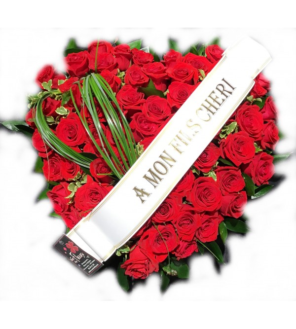Le coeur est la pièce de deuil par excellence qui saura exprimer tout l'amour, le respect et l'affection éprouvée à l'égard du défunt. Vous pourrez témoigner de vos sentiments et exprimer ainsi vos sincères condoléances. Le visuel a valeur indicative, le produit est susceptible de varier suivant la saisonnalité, l'arrivage et la sensibilité du fleuriste.